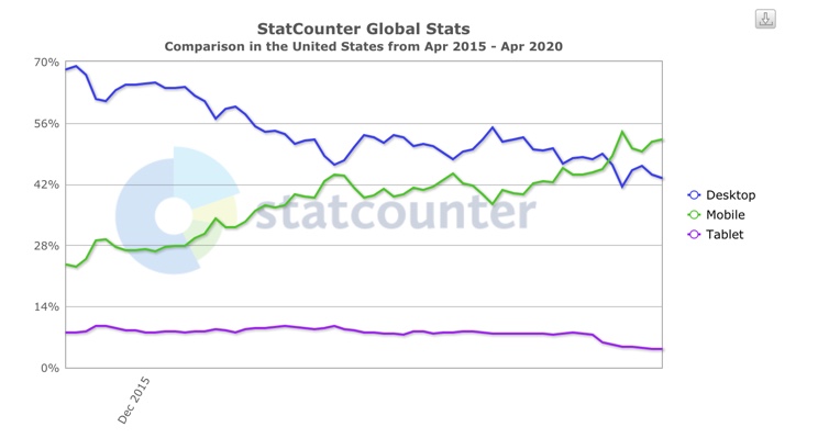 According to StatCounter, as of April 2020, only 43.5% of Americans use desktop computers to go online versus 52.3% who use mobile.