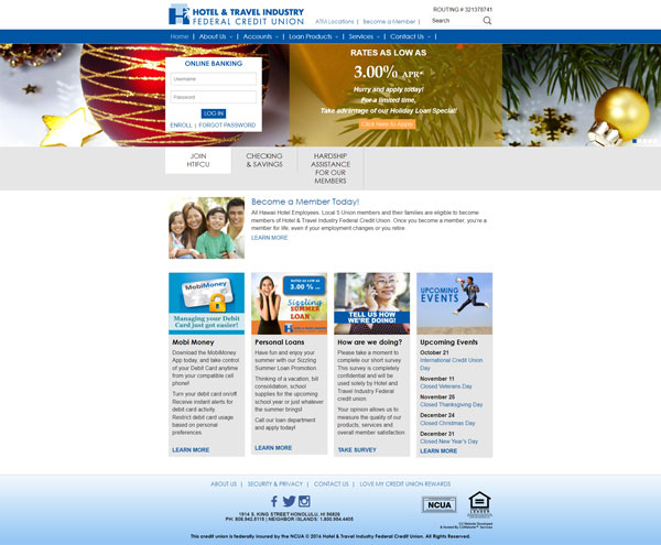 Nice and simple, well-organized and functional. What more do you need from a credit union website? The Hotel & Travel Industry Federal Credit Union website meets all criteria for a good website.