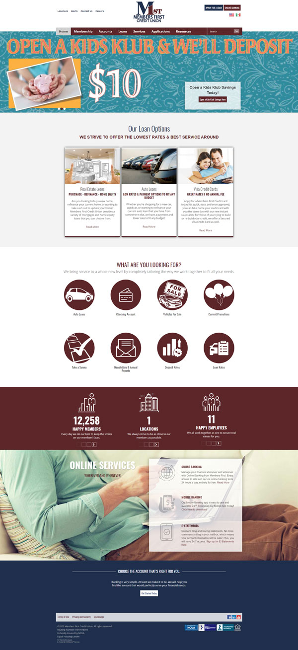 Choosing the best credit union website designs and outlining their best features may inspire you to improve the design of your website and help you attract more customers. So here is our review of the most appealing designs that these credit unions have created.